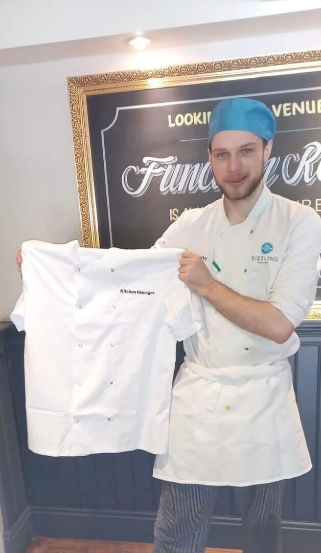 During my Apprenticeship I found that I really enjoyed working in the kitchen and the team I was working with. With the help of the team even though it was a struggle, I picked up the ropes. It was definitely a shock going from never cooking meat before to cooking hundreds of chickens and steaks a week! We then hit lockdown and following was the ‘Eat Out to Help Out’ scheme which was a real trial by fire. At the end of which I finished my level 2 production chef and went straight on to Level 3 Hospitality Supervisor and started my progression to Kitchen Team Leader. During this time, I got to work under Accredited Kitchen Managers which helped develop my skills massively. Finally, after finishing my Level 3 Hospitality Supervisor the opportunity to step up into the Kitchen Manager role presented itself and I leapt at the chance.